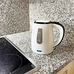 - ❓Is there a kitchen available at the apartment for guest use?Yes, the apartment is furnished with a fully-equipped kitchen and offers an electric kettle, a refrigerator, and glassware as well.